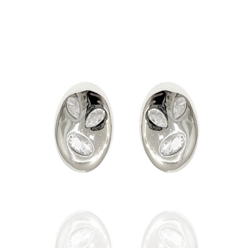 Brinco Oval Zircônias Geométricas Esplendor Banho Ouro e Ródio